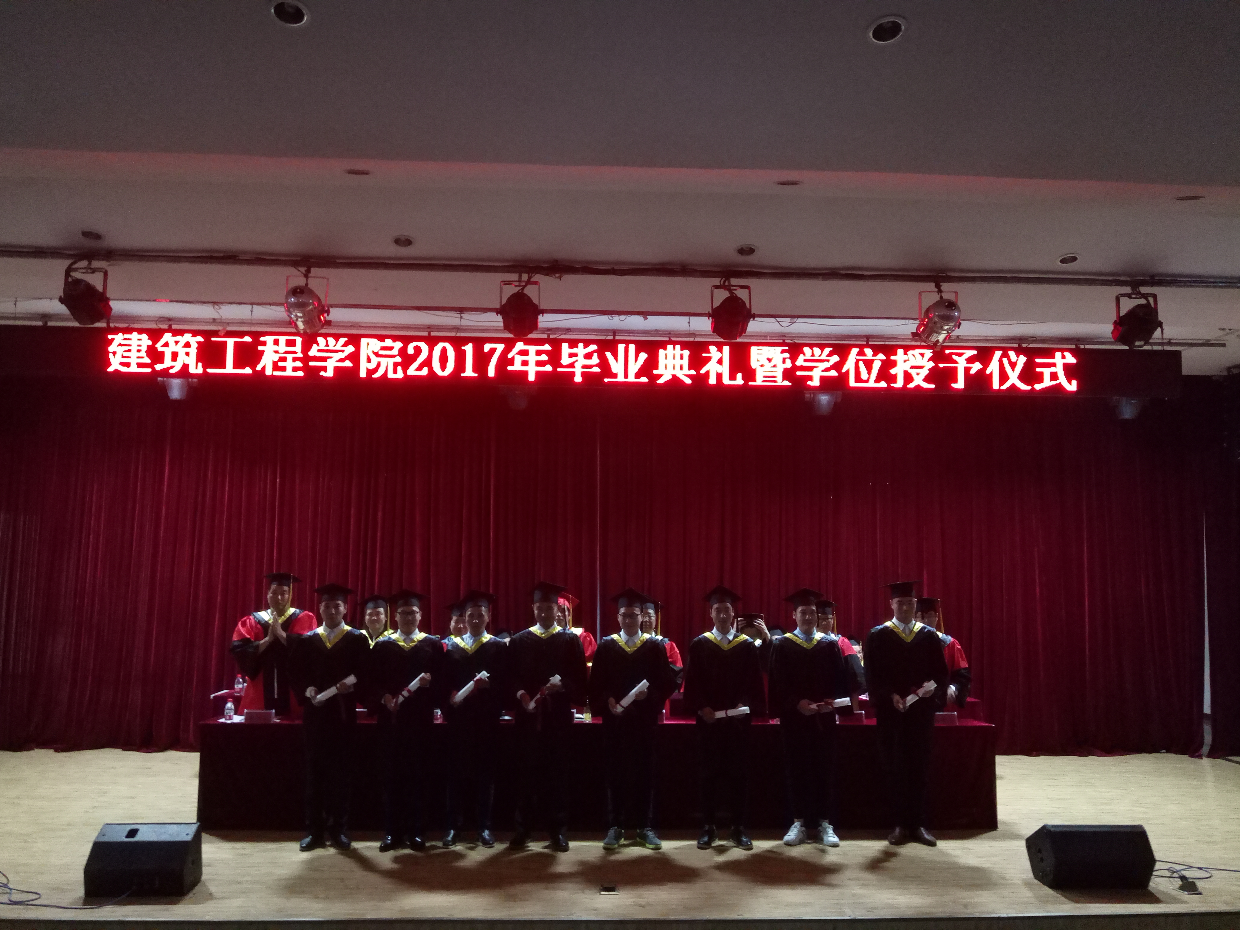 2017年6月15日,在艺术楼演播厅建筑工程学院举行了2017年毕业典礼暨学位授予仪式。1447名建工学子告别大学校园,带着郑工的精神、文化和品格,踏上新的人生征途。公司党委书记吴廷伟同志、beat365经理刘立新教授、常务副经理李文霞副教授等领导班子参加了毕业典礼。毕业典礼由公司党总支书记、副经理王美英主持。